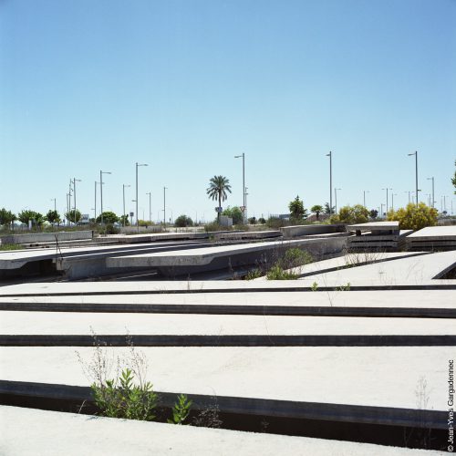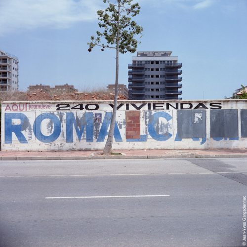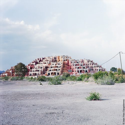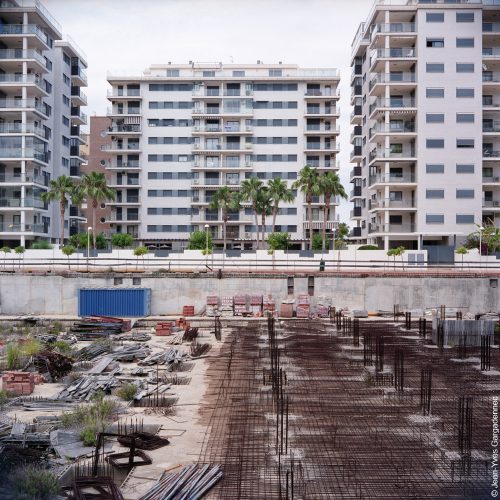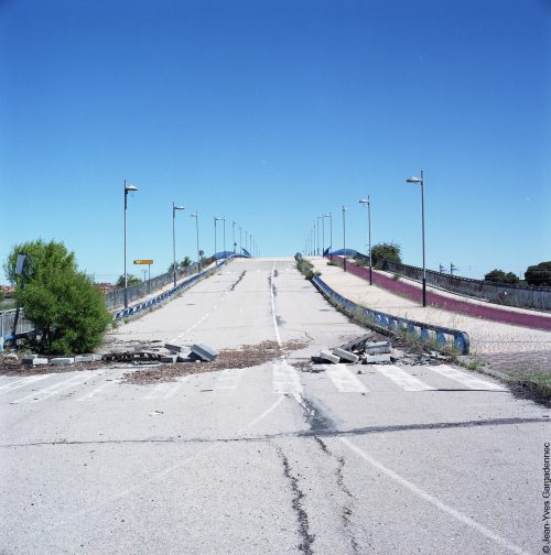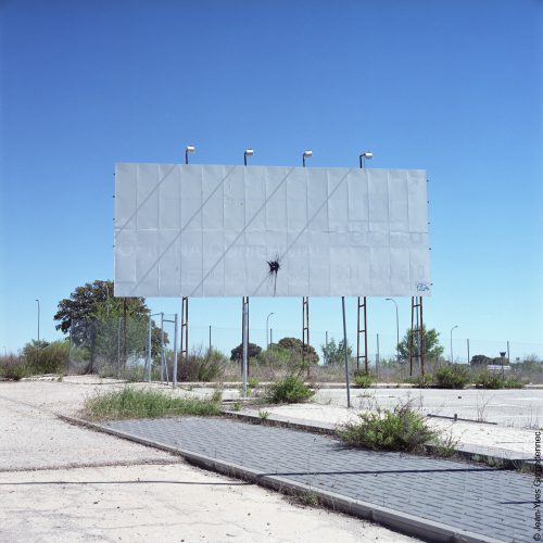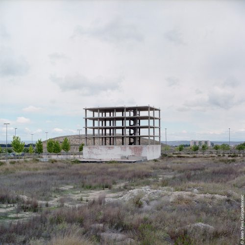 Le vide de nos certitudes humaines et industrielles! 2008 à Madrid, pas besoin du passé historique, la prison de « Carabanchel » est rasée en quelques jours dans l’ indifférence totale. Il est vrai qu’à l’époque le futur est solide comme le béton qui se dresse dans tout le pays. Dix ans après la crise économique que reste t’il de cette assurance de richesse ? 2018, je pars sur les routes espagnoles parcourant le territoire du nord au sud pour photographier les promesses de postérité d’hier. Mes images condensent « un futur au présent », de la fièvre bâtisseuse aux squelettes de béton, de la publicité à une réalité cruelle. 2019, La presse relate que l’immobilier de la péninsule ibérique repart avec de nombreux édifices sortant de terre.